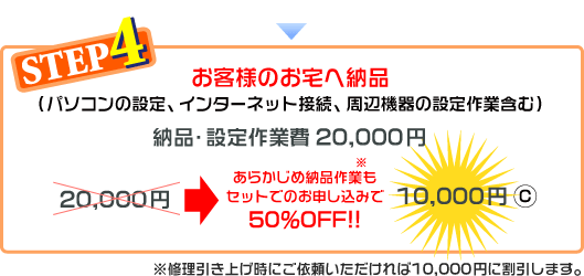 すべての作業が終わりましたら、作業報告と取扱いの説明をさせていただきます。ウイルスチェックソフトやWindowsも最新のセキュリティ状態にしてお届けいたします。インターネットやメールの設定、周辺機器の設定もお客様のご自宅で実施します。もともとお使いいただいていた状態まで責任を持ってお戻ししますので、作業完了からすぐにパソコンをお使いいただけます。