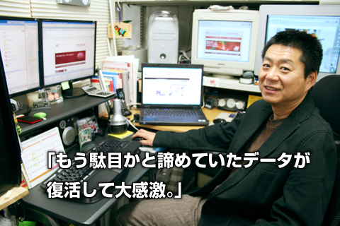 何ヶ月も前にすでに完全にあきらめていたデータがまさかの復活!おかげでその後の仕事でもかけずに済んだ時間や手間を考えると本当に計り知れない。しかも請求金額を見て2度ビックリ。時間制と作業内容積算の2通りの計算をして金額の低い方で請求してくれている。別にこれは自分だけ特別待遇なのではなく会社の方針だそうで、しかも作業完了後30日以内の同一修理は無料など、アフターサービスも万全。
